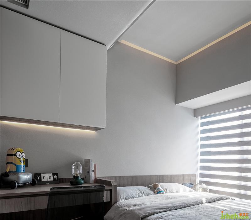 次臥的收納空間做得也是非常充足的。白色烤漆吊柜與白色墻面交織成一幅線條感強(qiáng)且立體的畫(huà)面,深圳裝修設(shè)計(jì)視覺(jué)上更簡(jiǎn)潔、統(tǒng)一。