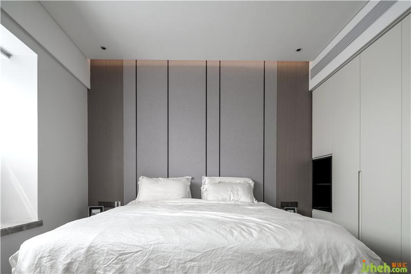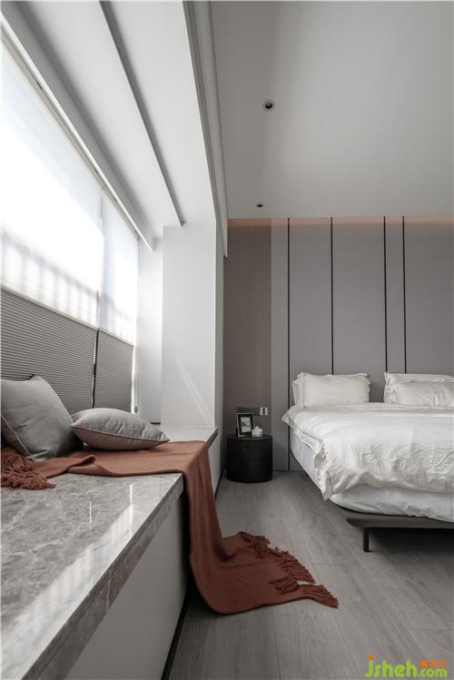 灰藍(lán)色的床頭背景搭配干凈明朗的床品,極簡(jiǎn)的落地?zé)敉ㄟ^(guò)墻體反射光照明,光線更柔和,深圳裝修設(shè)計(jì)營(yíng)造一個(gè)溫馨的睡眠空間。