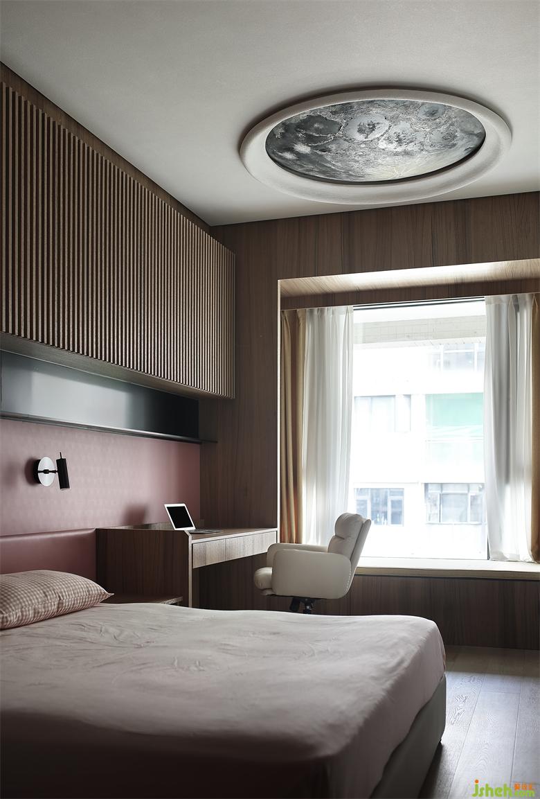 兒童臥房延續(xù)沉靜的格調(diào),將睡眠、儲物、展示融為一體。考慮孩童成長的周期,加高飄窗地臺,兼顧多種使用功能。白色、粉色與木色的主色透過墻面、柜體、家具得以延續(xù)。窗外湛藍(lán)的天空如畫舒展。簡潔、平靜、永恒是本案設(shè)計最突出的氣質(zhì),木子仁設(shè)計整體設(shè)計側(cè)重于空間情境的營造,素雅樸質(zhì)為表,內(nèi)里追求精神的自由與灑脫。