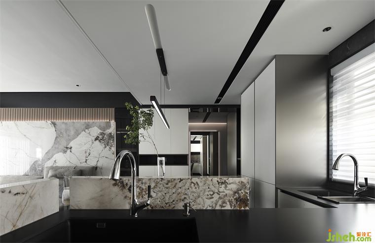 客廳與廚房沒有間隔,餐廳區(qū)的灰白色調(diào),電視背景深淺錯(cuò)落的烤漆柜門增加藝術(shù)感,自然的木飾面色調(diào)穿插金屬元素的植入畫龍點(diǎn)睛,木子仁設(shè)計(jì)深淺的對(duì)比點(diǎn)到為止,輪廓線條簡(jiǎn)潔明快,彼此形象獨(dú)立卻又功能互通,對(duì)于在節(jié)奏快速的深圳居者,外部環(huán)境和內(nèi)部環(huán)境的分離,才能帶來安定的感覺和有溫度的世界。