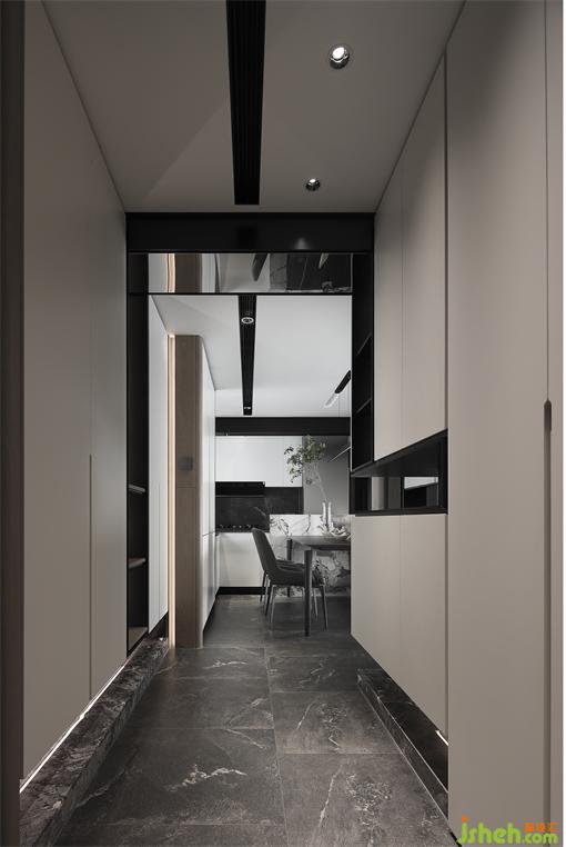玄關(guān)區(qū)的設(shè)立分割出來的書房,不僅符合風(fēng)水需求,更是希望在生活中與繁華外界保持一點(diǎn)安靜的內(nèi)心對(duì)話。