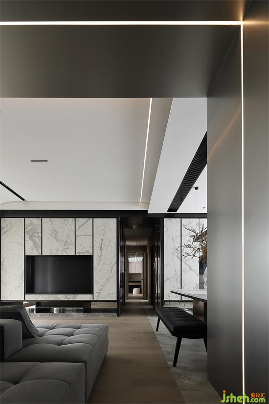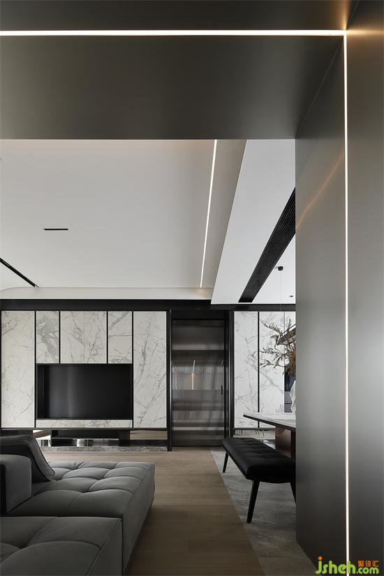 通過入戶沉降的方式將空間重組,一明一暗間,家裝設(shè)計(jì)在這喧囂城市之中,營(yíng)造出了一個(gè)世外桃源般的愜意秘境。