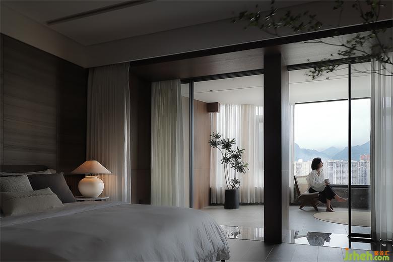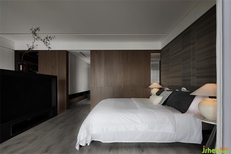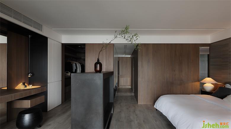 主臥滿足衣帽間、書房、睡眠區(qū)、衛(wèi)生間一體的套房需求,在尺度中把握功能與功能之間的平衡。然后封掉主臥與陽臺的出入動線,改從書房進(jìn)出,與公共區(qū)形成一條有趣的洄游動線。同時也加強(qiáng)主臥睡眠區(qū)的隱私性,能在工作后可以直徑走入陽臺散步,放松緊繃的疲累精神。
