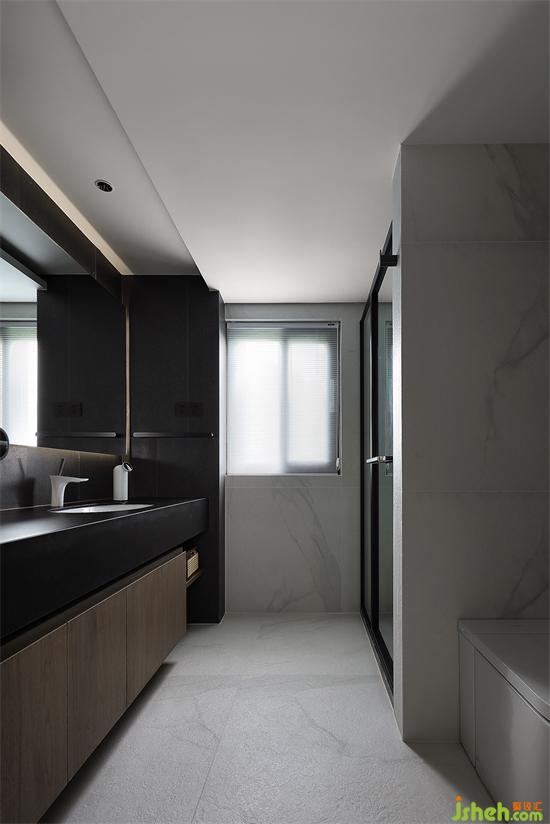 滿足干濕分離,去除繁雜的元素,利用更多的水磨石灰面創(chuàng)造出純粹克制的極簡(jiǎn)現(xiàn)代氛圍。