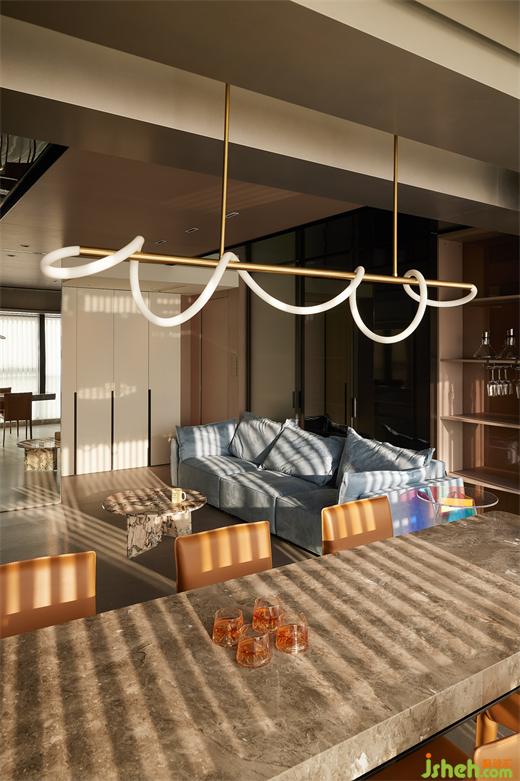 在進(jìn)行客廳公共區(qū)域功能組件劃分時(shí),家裝設(shè)計(jì)師保持的也是同樣的觀點(diǎn)。一個(gè)生活空間的家具數(shù)量應(yīng)對(duì)應(yīng)家庭成員的數(shù)量,但留白的空間并不是浪費(fèi),而是留給人去體驗(yàn),它是空間豐富性真正存在。