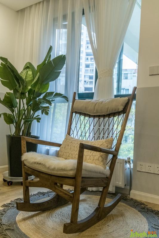客廳不大,也沒(méi)有做太大的變化,墻面采用的半墻處理,太滿則溢,過(guò)猶不及。上淺下深的半墻設(shè)計(jì),加深了墻面的層次感,同時(shí)也能拔高空間的層高。恰到好處的為單調(diào)的白墻注入了一絲新鮮的活力,不顯壓抑,卻又很大氣。在角落擺放旅人蕉,讓整個(gè)空間也充滿了生氣。能想象出,若周叔叔在沙發(fā)上看電視時(shí),偷偷注視著在搖搖椅上看書(shū)的熊阿姨,而此時(shí)熊阿姨也注意到有人盯著她看,便抬頭相望,卻剛好與周叔叔四目相對(duì),二人微微一笑的場(chǎng)景。