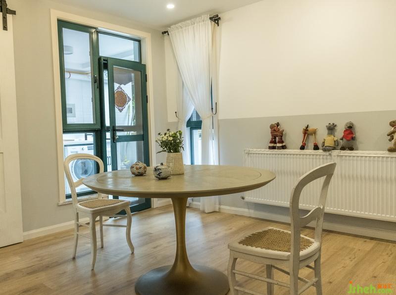 在餐廳會(huì)發(fā)現(xiàn)只有一個(gè)大圓桌,配上兩把餐椅,雖普通但是卻有小心機(jī),平時(shí)家里就兩人,所以餐椅也沒(méi)有布置太多,如果來(lái)客人會(huì)再添置,但用圓桌的含義,是不管我怎么轉(zhuǎn),我都可以遇到你。在靠近你不遠(yuǎn)的位置,我想一直看著你。