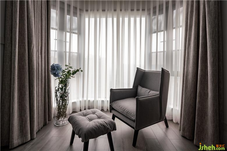 沙發(fā)沒有傳統(tǒng)式靠墻,而是松散地擺放在客廳中央,使得空間在開放的同時又不會顯得過于空曠。生活陽臺被一縷白紗籠罩,形成一種純粹自然的通透視線,晴天時拉開窗簾,則可以享受滿滿的陽光浴。足夠大空間容量,無論是一家人還是要請朋友,都可以成為撐起一場精彩的party。
