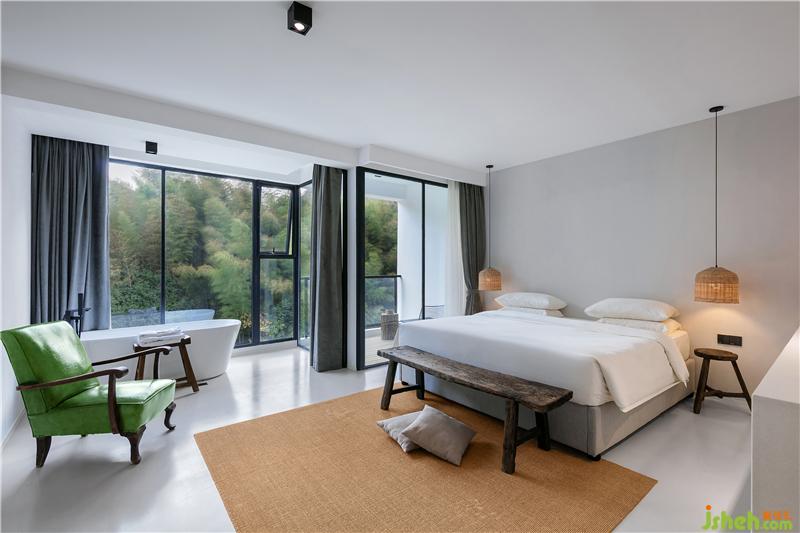 所用材料都取自天然:石磚、木頭和竹子。設(shè)計(jì)著重于當(dāng)?shù)刂褡拥倪\(yùn)用,將它運(yùn)用于建筑主立面上海酒店設(shè)計(jì),以當(dāng)代的語匯重新詮釋了該地區(qū)的傳統(tǒng)竹制建筑形式,同時(shí)將建筑北立面融合于周圍的竹林中。