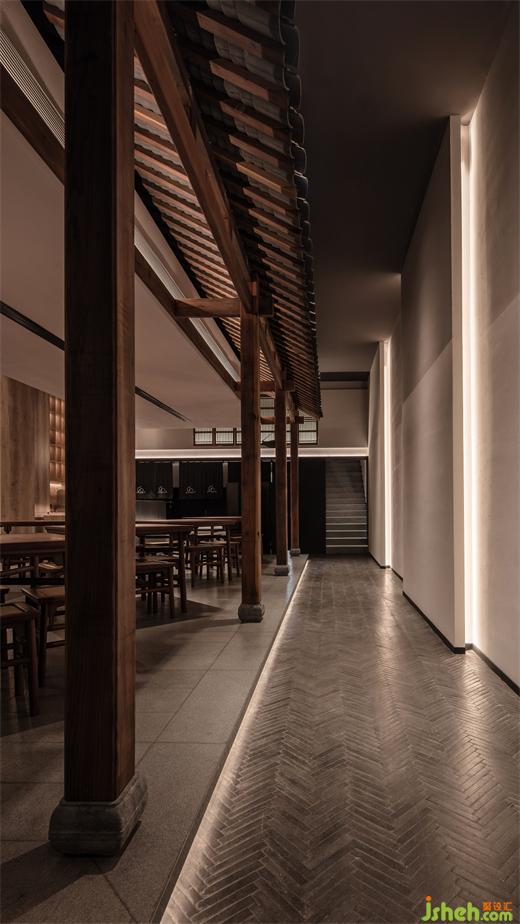 在整個面館的空間布局上,設計師力求大尺度、簡約、層次分明!蘇州姑蘇橋面館設計從宋氏房梁榫卯結構到明式定制實木家具,再到大面積留白,移步換景,力求呈現(xiàn)精致、雅致、和諧之美!讓傳統(tǒng)文化和當代藝術嫁接,從而形成一種新的生活美學和生活方式!