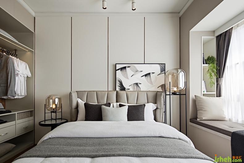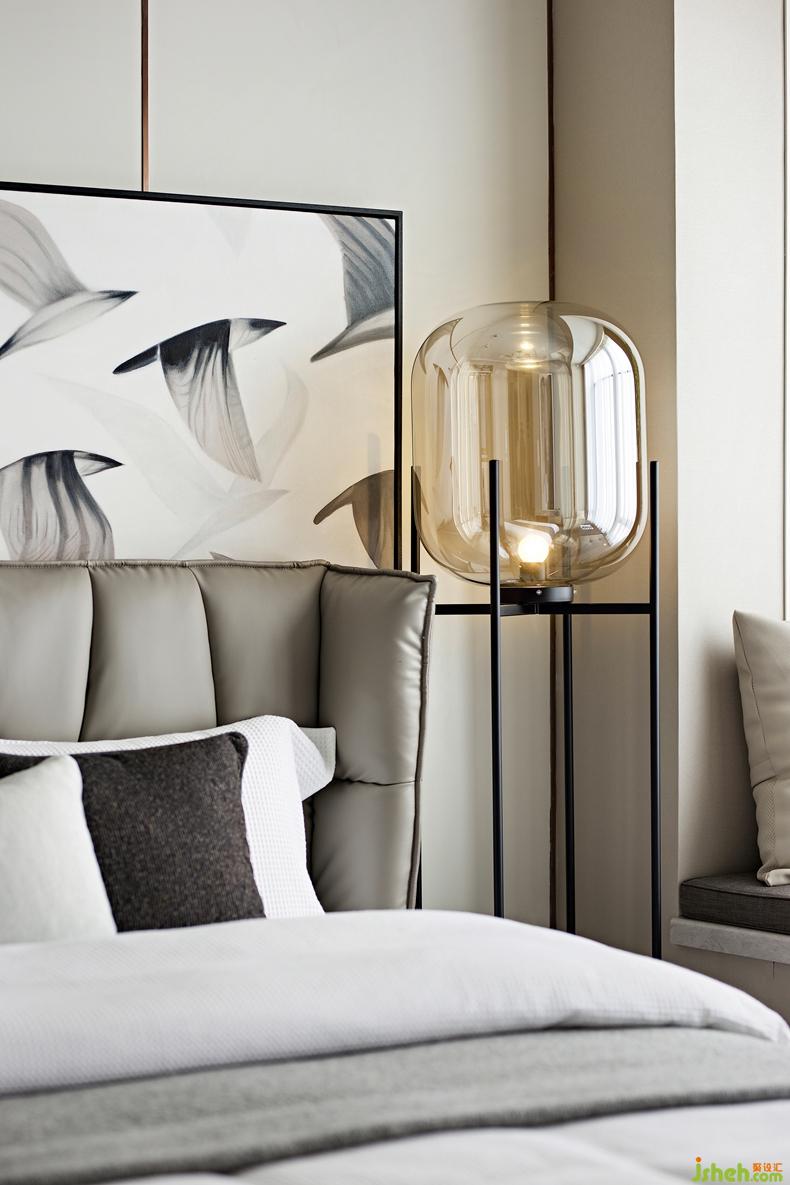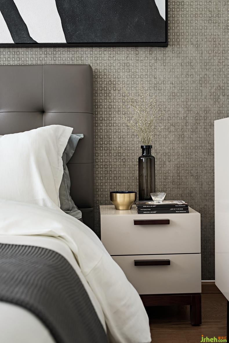 皮質(zhì)軟包床搭配精巧設(shè)計(jì)的黑檀木床頭柜,高挑的落地?zé)糇尶臻g更有層次感,將現(xiàn)代韻律展現(xiàn)得淋漓盡致,深圳設(shè)計(jì)公司整個空間仿佛一幅精美的空間畫次臥灰調(diào)背景墻和素凈的家具床品,是優(yōu)雅風(fēng)情的最好色彩空間在深與淺的碰撞中造就一個詩意的存在。