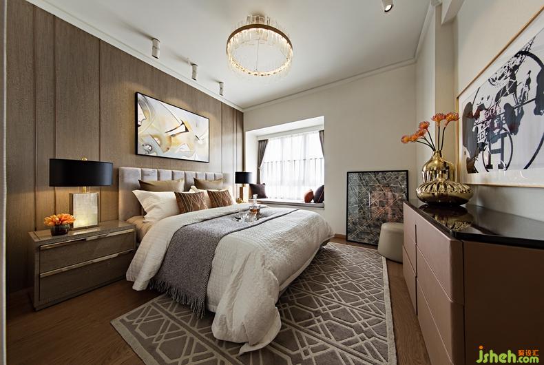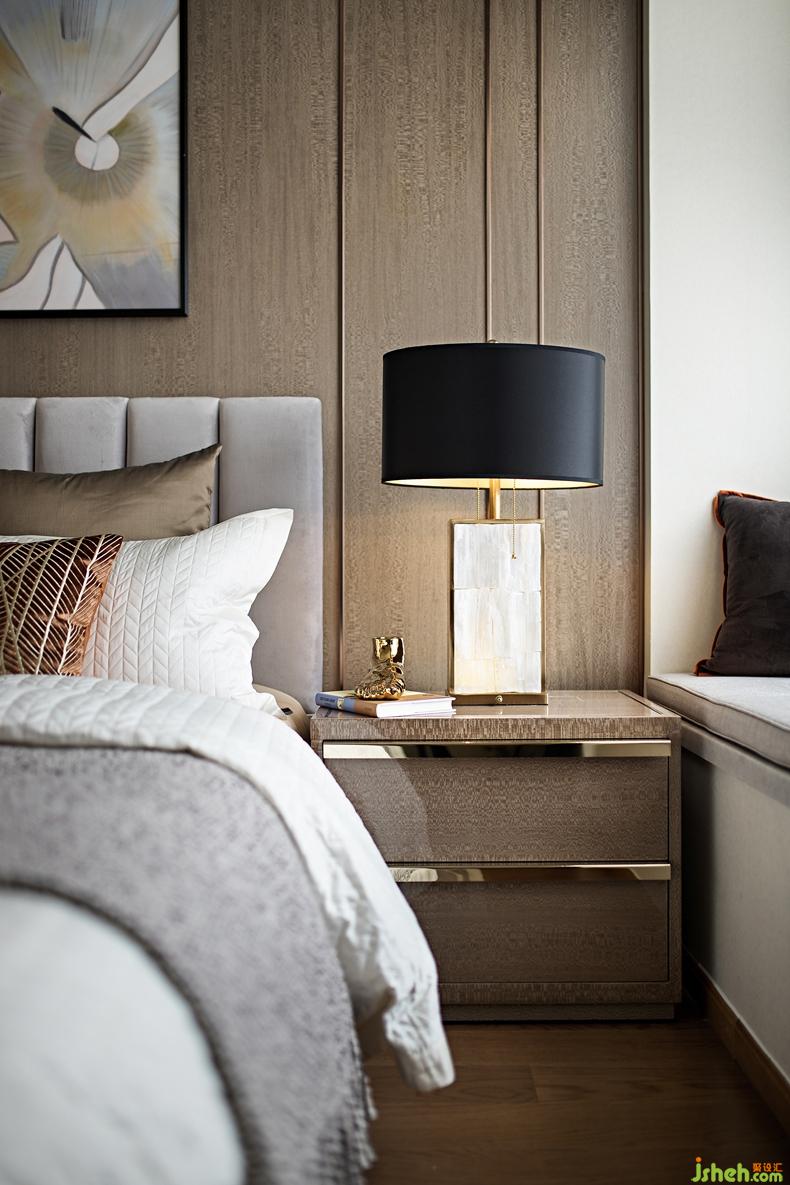 主臥運(yùn)用簡潔的現(xiàn)代手法幾何線條家私,深圳設(shè)計公司點綴歐式小飾品高品質(zhì)家居,不張揚(yáng)不嫵媚自然散發(fā)的成熟理性韻味提升生活格。