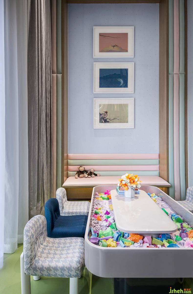 兒童游樂區(qū)豐富的色彩,創(chuàng)意組合掛畫散發(fā)著優(yōu)雅且神秘的氣息,充滿童趣的家具設(shè)計,構(gòu)造出童話般游樂空間.室內(nèi)設(shè)計師