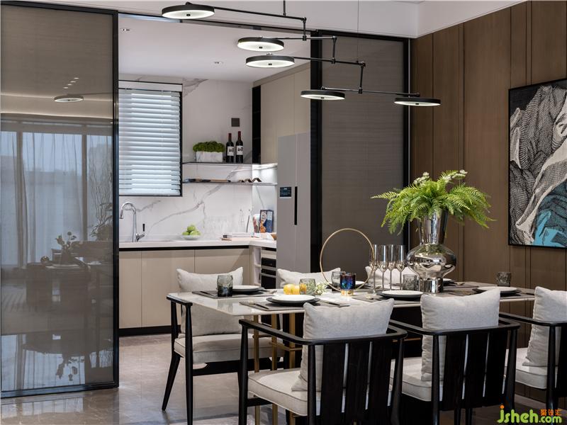人創(chuàng)造了空間,空間反哺于人,餐廳區(qū)通過兩扇玻璃門將光線引入室內,同時也將儀式感端上餐桌,營造舒適的用餐氣氛,舒暢人的心靈。