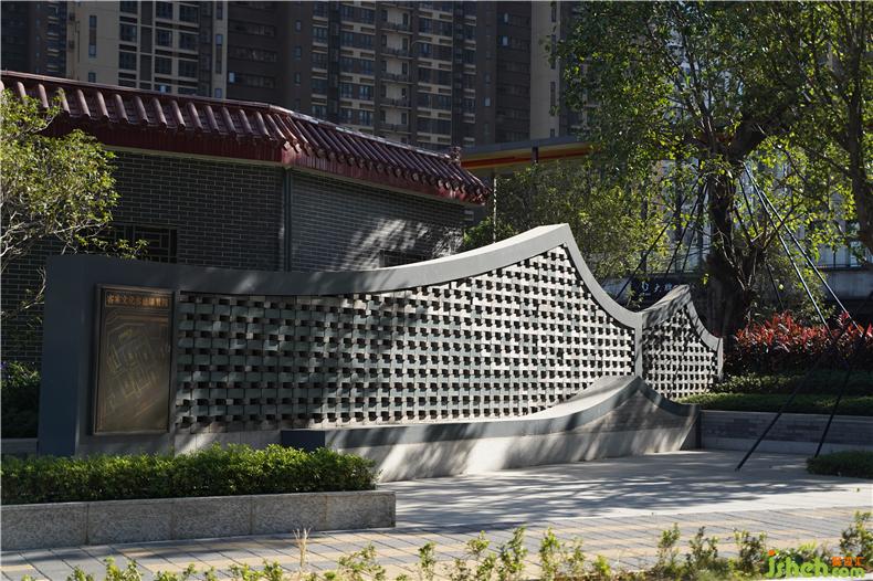 傳統(tǒng)元素與現(xiàn)代材料結(jié)合,最美的瞬間是夜晚華燈亮起,裝修設計整座景墻透著柔光。又與周圍星星點點的柔和燈光環(huán)繞、渲染、交疊,形成過去與未來的連接,意境深遠。