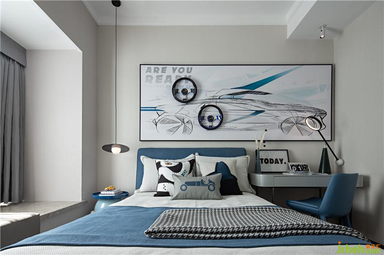 海藍(lán)的夢幻應(yīng)用到兒童房充滿著無限的夢幻,墻面的視覺展示著孩子對未來的展望與探索,陽光的包裹更讓孩子可以在隨意暢想的環(huán)境中無憂無慮,鮮明的空間讓人感受到繽紛雀躍的而又充滿活力。樣板房設(shè)計