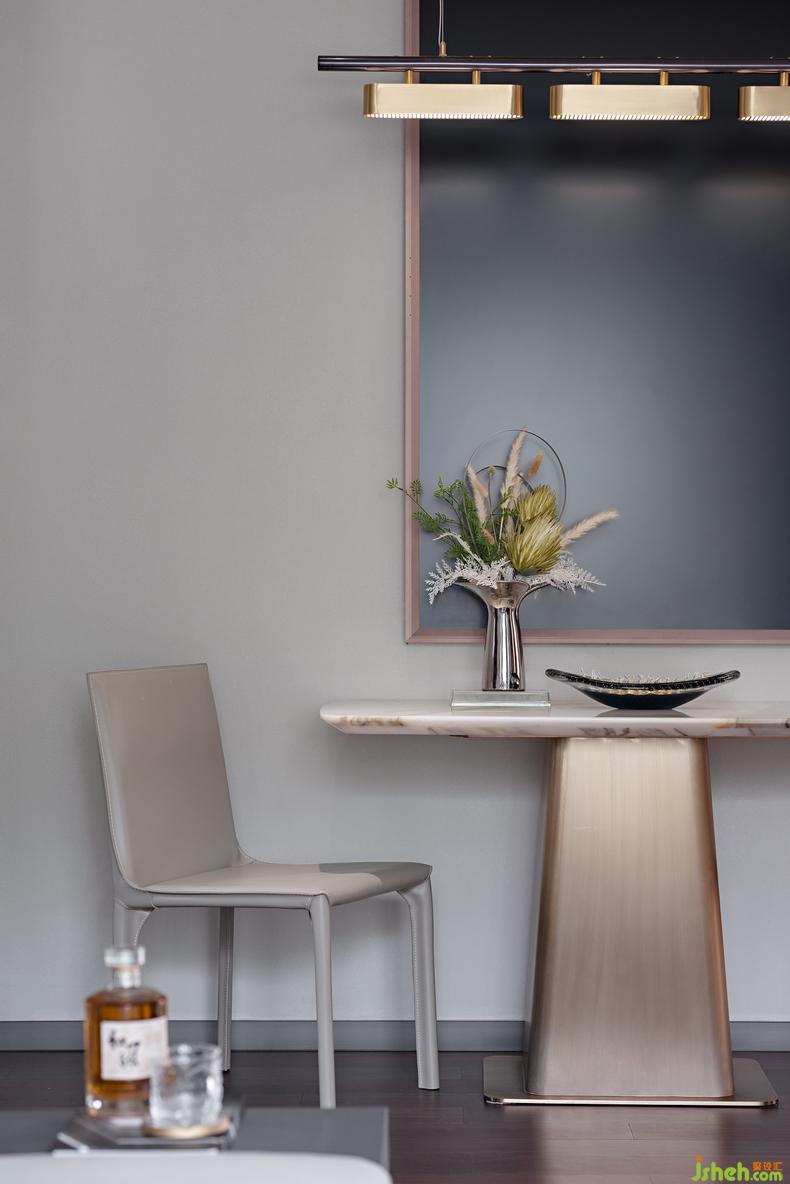 將愛好融入空間的美學(xué)趣味中,對手辦的青睞與對車模的鐘情以科技元素的掛畫搭配襯托,樣板房設(shè)計多元化的收納布景裝下對汽車與科技的好奇,主人對自主空間“大男孩兒式”的表達方式,簡單直接并充滿著紳士與激情的荷爾蒙,對于自己的生活一絲不茍,對于的自己的個性不假于心,看似是空間的敘事,誠則是熱愛的蔓延。