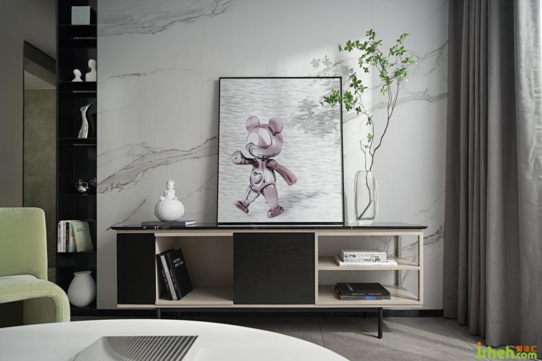 全景落地窗讓光線被最大化的保留,同時(shí)也打開了探索的視野界面,素色的布藝沙發(fā),立體的抽象掛畫,星際熊的潮流人偶,都是居者對(duì)生活熱愛的呈現(xiàn),無需繁復(fù)的色彩,即能鋪陳無限的想象,進(jìn)行一場與樂趣與熱愛對(duì)話... ...