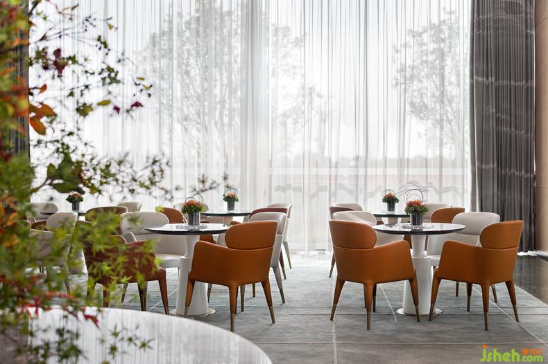 洽談區(qū)丨四面落地玻璃讓自然透到室內(nèi),在儼然有序的空間中蔓延著海岸風(fēng)情,橙色皮質(zhì)座椅使寧靜的空間多了一絲生活感,用簡約自然的方式演繹奢華。