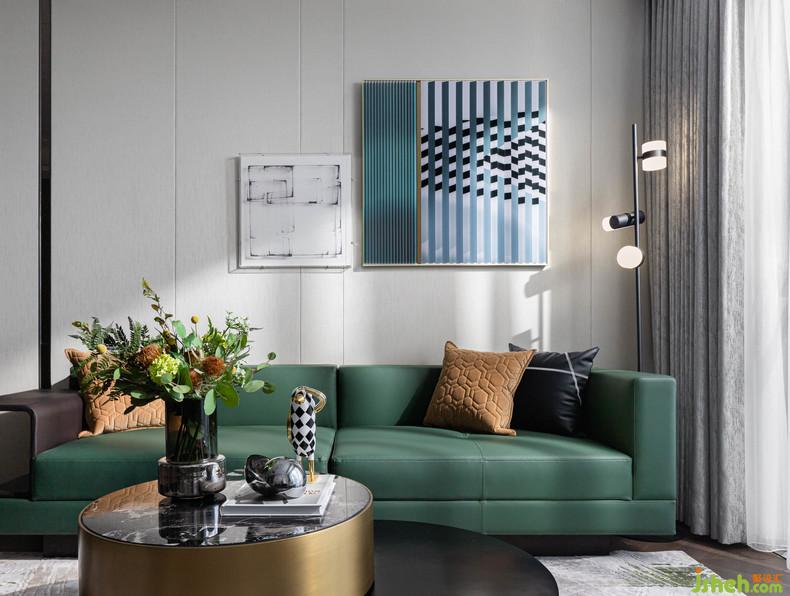 客廳丨熱情與冷淡,硬朗與溫柔,率性與謹(jǐn)慎.....室內(nèi)設(shè)計(jì)師在不斷地平衡與取舍中混搭出“家”的趣味性。大膽的墨綠色皮質(zhì)沙發(fā)賦予空間時(shí)尚又復(fù)古的氣息,金色和奢橘的調(diào)和出精致感受,現(xiàn)代的燈具與裝置,給你一個(gè)宅在家的理由。