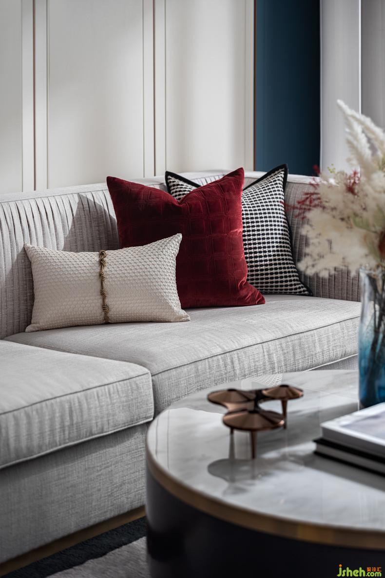 寬度讓人更能注視身旁的藝術,讓生活的過程有了一種次序感,室內設計師客廳將賦有禮儀感的家宅印象與儲物功能融合,多向的家居布局在布藝的沙發(fā)、暖白的墻體、全景的飄窗演變?yōu)槔硐肷畹哪芰?,而在輔助色調的選擇上,卡地亞紅與鸚鵡綠的配比,讓空間立面的形式語言多了輕奢的定義,讓私域領地堪比一場優(yōu)雅的旅行。