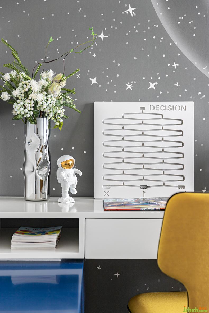 兒童房用多維的元素傳遞情感,標(biāo)注性的藍(lán)色氣息讓孩子的成長(zhǎng)充滿未來氣息,宇航員的墻體視覺更讓孩子熱愛得以肆意延續(xù),配以童趣設(shè)計(jì)感十足的物品裝飾,讓空間不僅有愛更充滿活力。