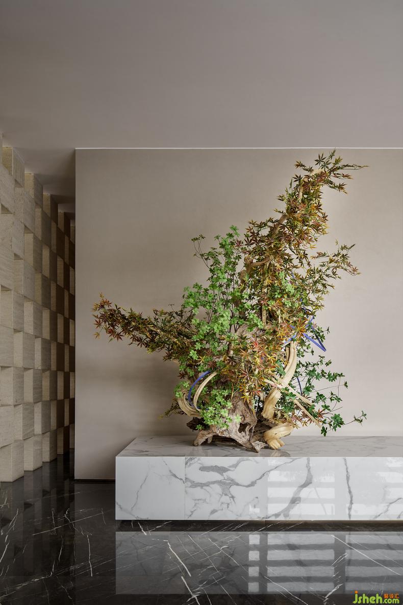 打造沉浸式的居享環(huán)境,要讓居者在踏入這里的第一步就對(duì)生活充滿(mǎn)幻想,如海的度量,強(qiáng)化了空間對(duì)于大尺度的界定,金屬色度與白紋云石的空間布局,用空間秩序重組體驗(yàn)的結(jié)構(gòu),給喧囂到僻靜,世俗到曠然一個(gè)儀式的轉(zhuǎn)合,讓海的詩(shī)篇從第一章開(kāi)始就有觀照內(nèi)心的留白。