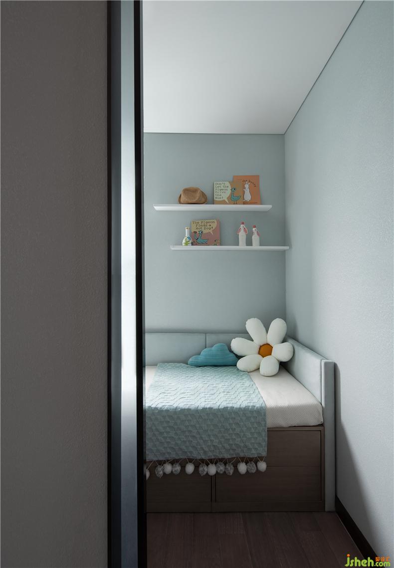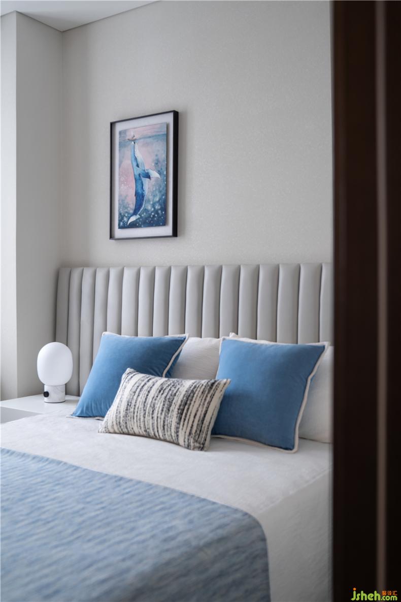 房間內(nèi)以素雅的色調(diào)鋪陳,搭配著淺海藍(lán)的軟裝營造,簡單的細(xì)節(jié)中都彰顯著屬于小主人的居享時光,充滿無盡的樂趣。