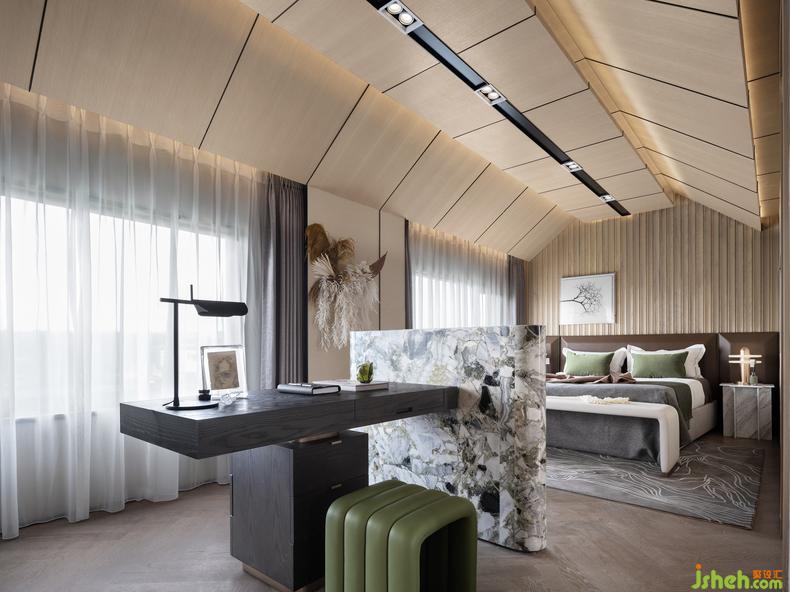 主臥丨縱深的視角賦予著空間對于節(jié)奏的感知,長鏡頭的感知讓視野得以擁有最大限度的舒展,功能性的區(qū)格讓起居被賦予了多元化的包容力,也讓木質(zhì)的素雅和石材的氣韻,在這個空間里揮灑的淋漓盡致。