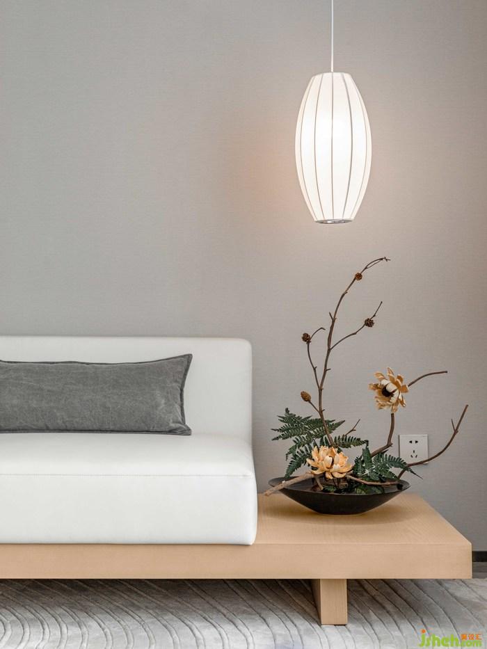 空間設(shè)計(jì)定位為日式禪意,與中式相比,日式美學(xué)在呈現(xiàn)上更加簡潔淡雅。以白色、原木色和大地色為主的日式樣板間,充滿著獨(dú)到的情感表達(dá)?;野?,奠定了清冷之調(diào),跳躍其間的暖色帶來愉悅之感;留白氛圍、精致的盆景其器皿,在細(xì)節(jié)處勾勒出主人雅致的簡約美學(xué)和生活方式