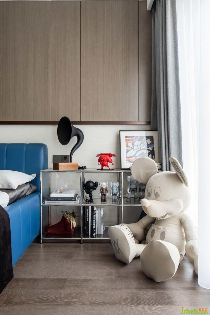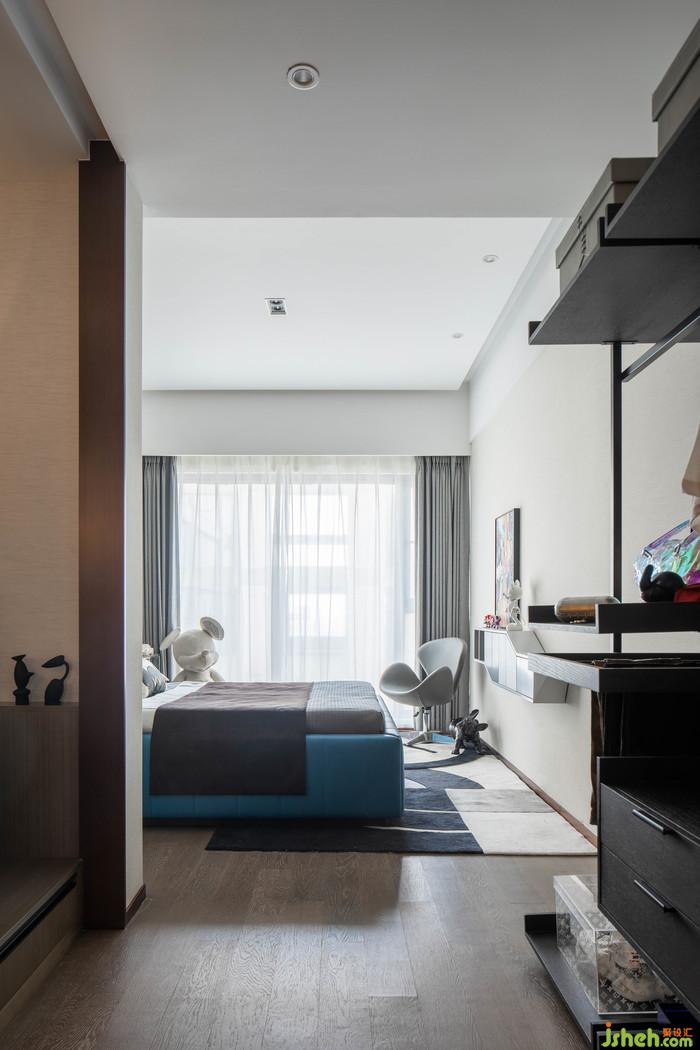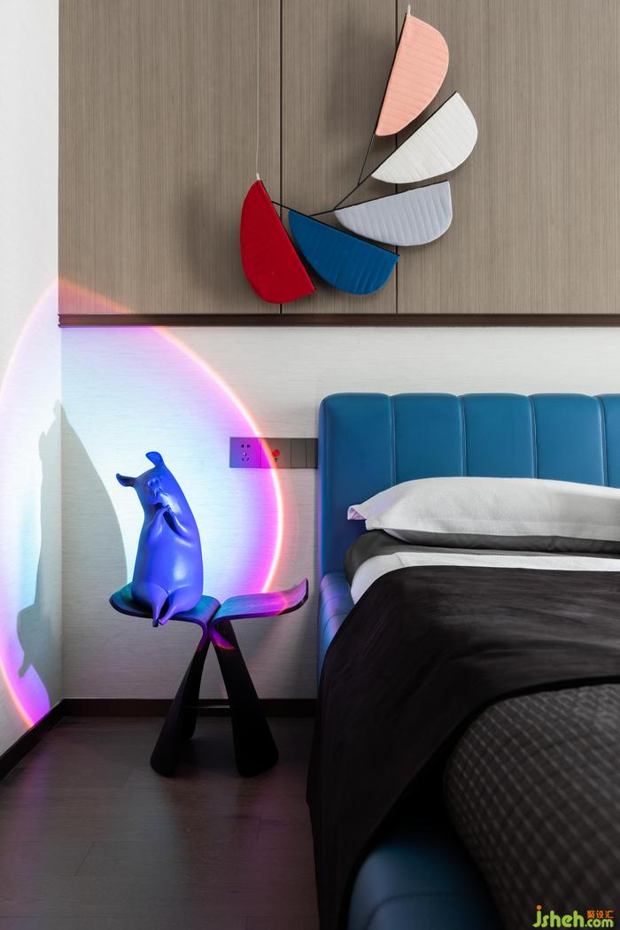 全藍丨整體的格局給予居者可感知的空間深度,同時又確保了足夠的私密性,靈活而開放的整體氛圍,在簡約的色調上更顯開闊,通體科技藍的床體色調,更為空間增加了一抹冷冽的動感