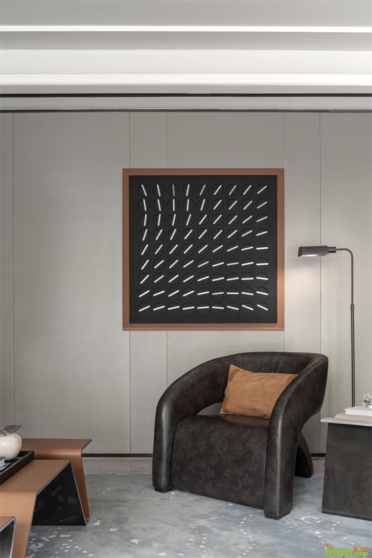 客廳丨高級(jí)的灰調(diào)與橙色相遇,冷靜與熱情碰撞,低調(diào)與張揚(yáng)對(duì)接,樣板房設(shè)計(jì)積蓄的力量剎那迸發(fā)驚爆了感官,空間的開合,色彩的解構(gòu),簡(jiǎn)潔的線條,別致的家具組合,在不同的狀態(tài)和光線下充滿不同的趣味與變化。