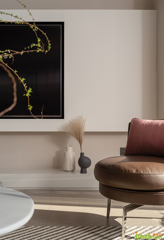 隨性而不隨意擺放的家具散落客廳各處,低飽和度的色彩放松身心,洗去疲憊,將溫暖進(jìn)行到底。