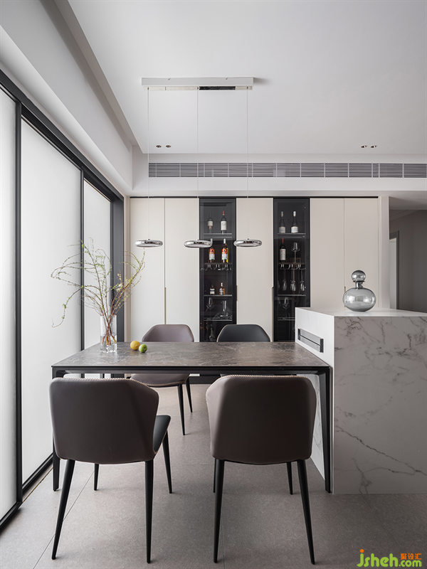 石板餐桌、咖色座椅、極具藝術(shù)感的吊燈融匯在整個(gè)餐廳設(shè)計(jì)中,增添了更具時(shí)尚感和個(gè)性感的格調(diào),餐廳也以它獨(dú)有的空間語言延伸至每一頓餐食之中。
