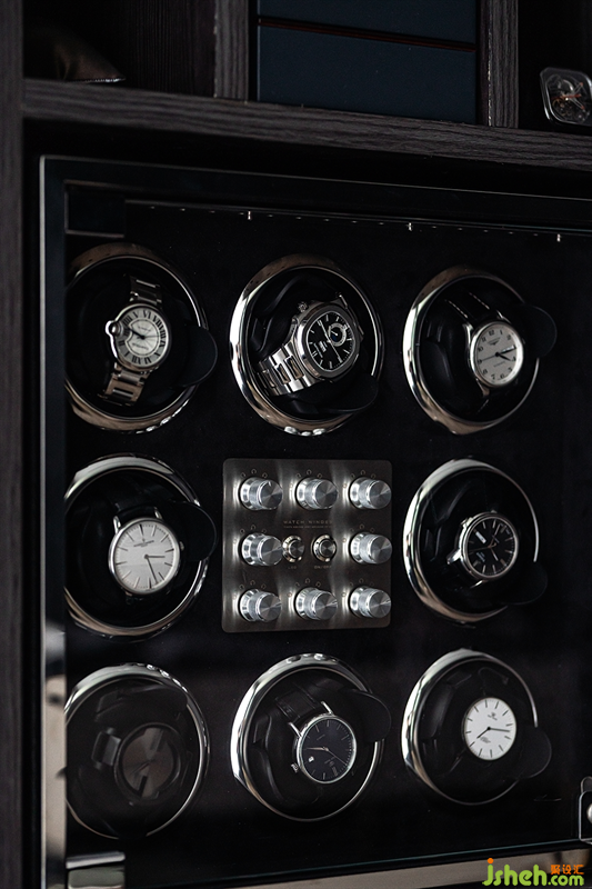 利用隔板和抽屜搭建合理的展示柜,業(yè)主生活中愛好的物品在空間中被謹(jǐn)慎地呈現(xiàn)出來,機(jī)械表,郵票等。