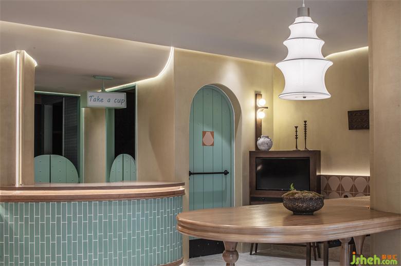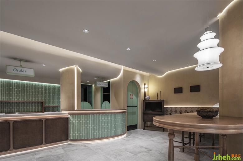 The counters and walls in the business area break the dullness with a strong sense of architecture and sequence, and jointly carry the creation of emotional atmosphere. The convergence and harmony of a variety of elements, in the fusion and collision of color and geometric elements, build a neat and refreshing style, but also very fashionable. The combination of arched gate and circular fence is just like the desert plants with abundant water, with orderly linear texture and light green overall layout, presenting the aesthetic artistic conception of virtual reality alternation in full of vitality.