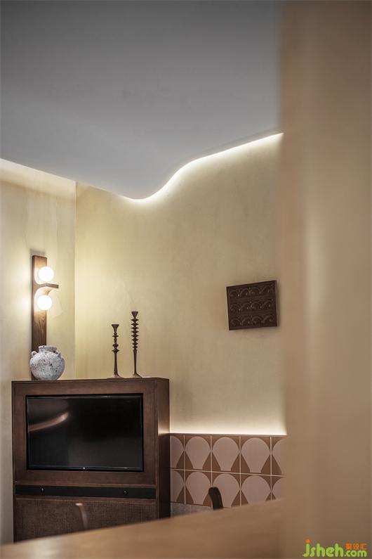 伴隨著天花曲線的舒展,空間打破了原有的框線桎梏,用不規(guī)則的磚面和墻體對(duì)空間進(jìn)行了切割與重塑,極大強(qiáng)調(diào)了區(qū)域的獨(dú)立性和立體性。