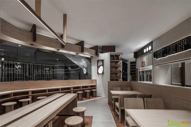 推門(mén)深入,室內(nèi)延續(xù)東方美學(xué)雅致澹然的筆觸,鮮明的品牌記憶,亦濃縮于其中。面館設(shè)計(jì)大范圍的木質(zhì)包裹,氤氳出溫潤(rùn)質(zhì)樸的自然氣息,奠定了清新素雅的空間基調(diào)。紅磚白墻透過(guò)粗獷的紋理與質(zhì)感,實(shí)現(xiàn)復(fù)古與新生的平衡表達(dá),以回應(yīng)品牌一以貫之的歷史底蘊(yùn)與文化內(nèi)涵。燈光與墻邊體塊、線(xiàn)條造型的交織,也讓整個(gè)空間萌生更加豐富的層次。