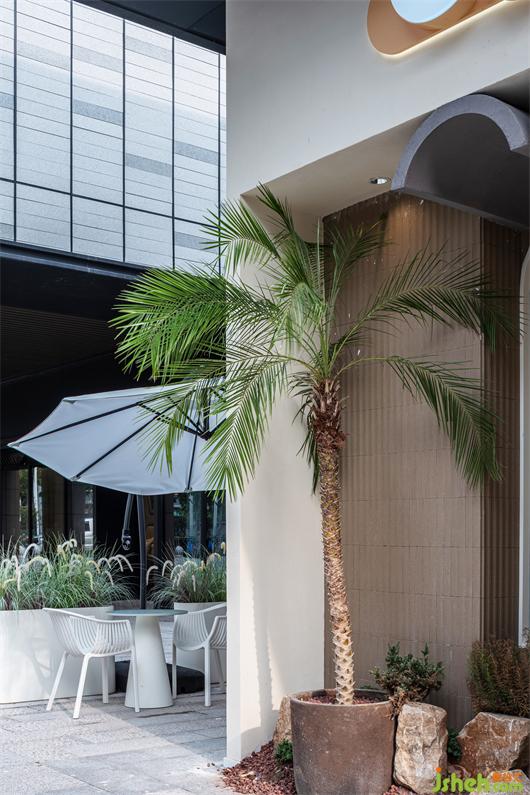 The design of the swinging area blurs the boundary between indoor and outdoor space, satisfying the operational function while connecting the customer with the street.Designersestablish emotional communication with consumers through situational interaction,so that they immersed in the leisure atmosphere of the commercial district.