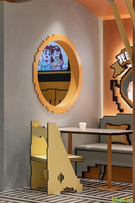 金屬材質(zhì)、充滿卡通氣息的各式座椅、盤(pán)踞在墻上的玩偶造型、游戲里熟悉的裝置等,店鋪設(shè)計(jì)讓扁平的二次元像素瞬間變得立體起來(lái),不管消費(fèi)者是否擁有馬里奧游戲情節(jié),在這里或多或少能找尋到內(nèi)心的一些趣味。