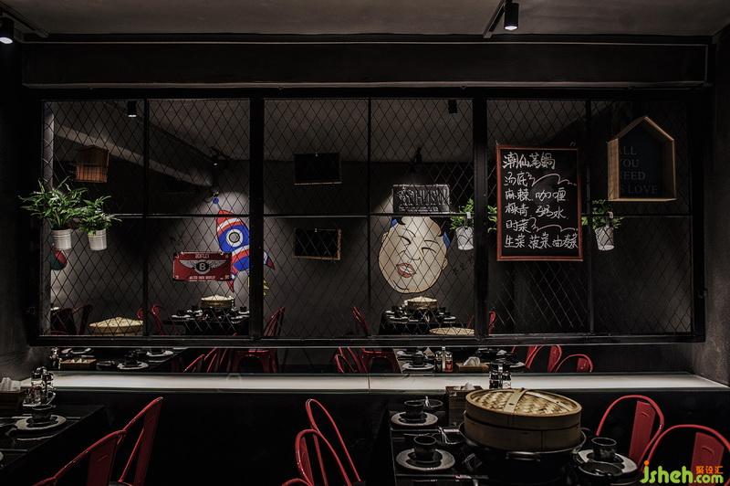 “打造一個具有視覺沖擊力的有趣的飲食空間”、“定名為‘潮仙蒸鍋’餐廳”、“融入朝鮮元素”……當(dāng)客戶提出這些要求的時候,“趣味”、“個性”、“色彩”的整體調(diào)性呼之欲出。