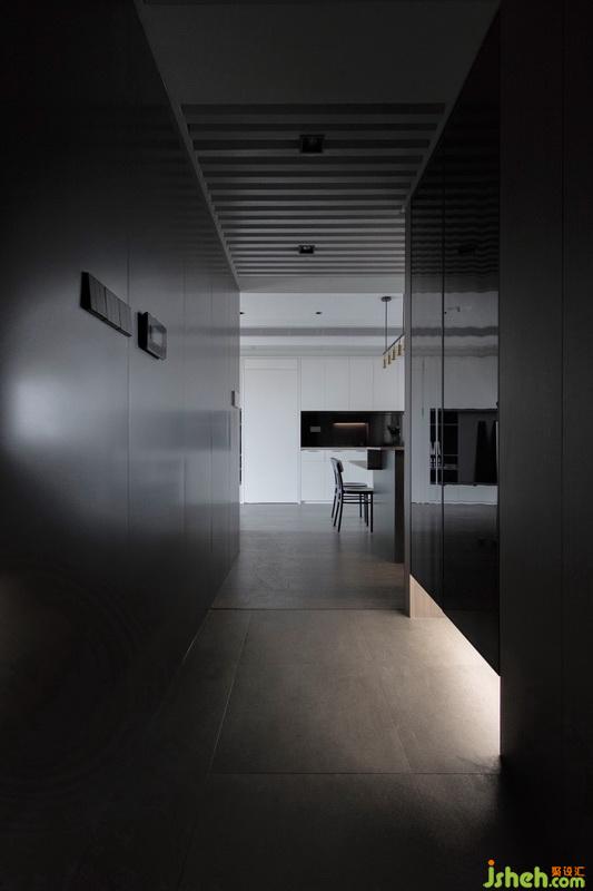 鞋柜搭配半透的黑玻璃,玄關兩邊干凈統(tǒng)一的色調處理更具空間感,加上材質的反射效果讓視覺有了延伸感。從踏進家門的那一刻開始,已經(jīng)明顯感覺到空間的寬敞。