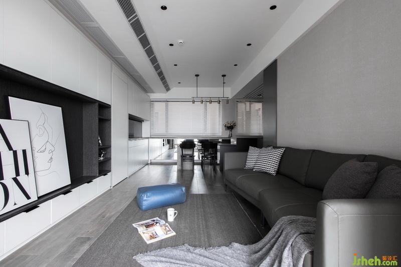 簡潔干凈的黑白灰,是整個空間的主色調,符合業(yè)主簡約風格的設計需求和簡單舒適的生活態(tài)度。電視高柜與天花之間留空,設置了間接性光源。天花機風口以斜面形式呈現(xiàn),形成梯形天花,這樣的處理顯得天花不那么呆板,也能保證天花高度,減少壓抑感。從客廳、餐廳、一直到房間地面,都是使用木地板,更添舒適放松的感覺??臻g結構線條帶來的延伸感,似乎意味著生活會有更多的想象和可能性。