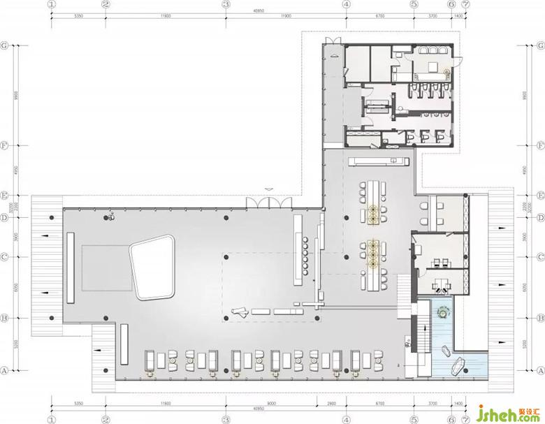 一樓接待區(qū)和二樓的VIP區(qū)之間,靜默存在又彼此串聯(lián)。吊腳樓強(qiáng)化了一樓與二樓架構(gòu)空間的起、承、轉(zhuǎn)、合,成就一種“你中有我,我中有你”的布局性手法,這不禁令人聯(lián)想到山城的大街小巷,跌宕錯(cuò)落中又不缺乏奇幻的瑰想。