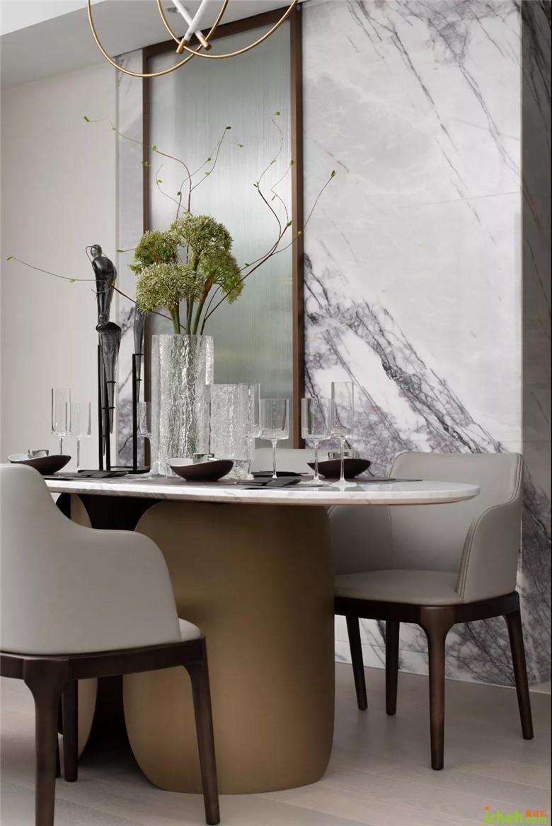 樣板房設(shè)計(jì)的大理石桌上盛著一縷陽(yáng)光與花的芬芳,恰如有生命般在空間自由生長(zhǎng)。廚房飄來(lái)妻子煲湯傳來(lái)的陣陣香味,丈夫座與餐廳品著剛開(kāi)好的Whiskey,再來(lái)一首布魯斯吧!享受這份難得的愉悅時(shí)光。