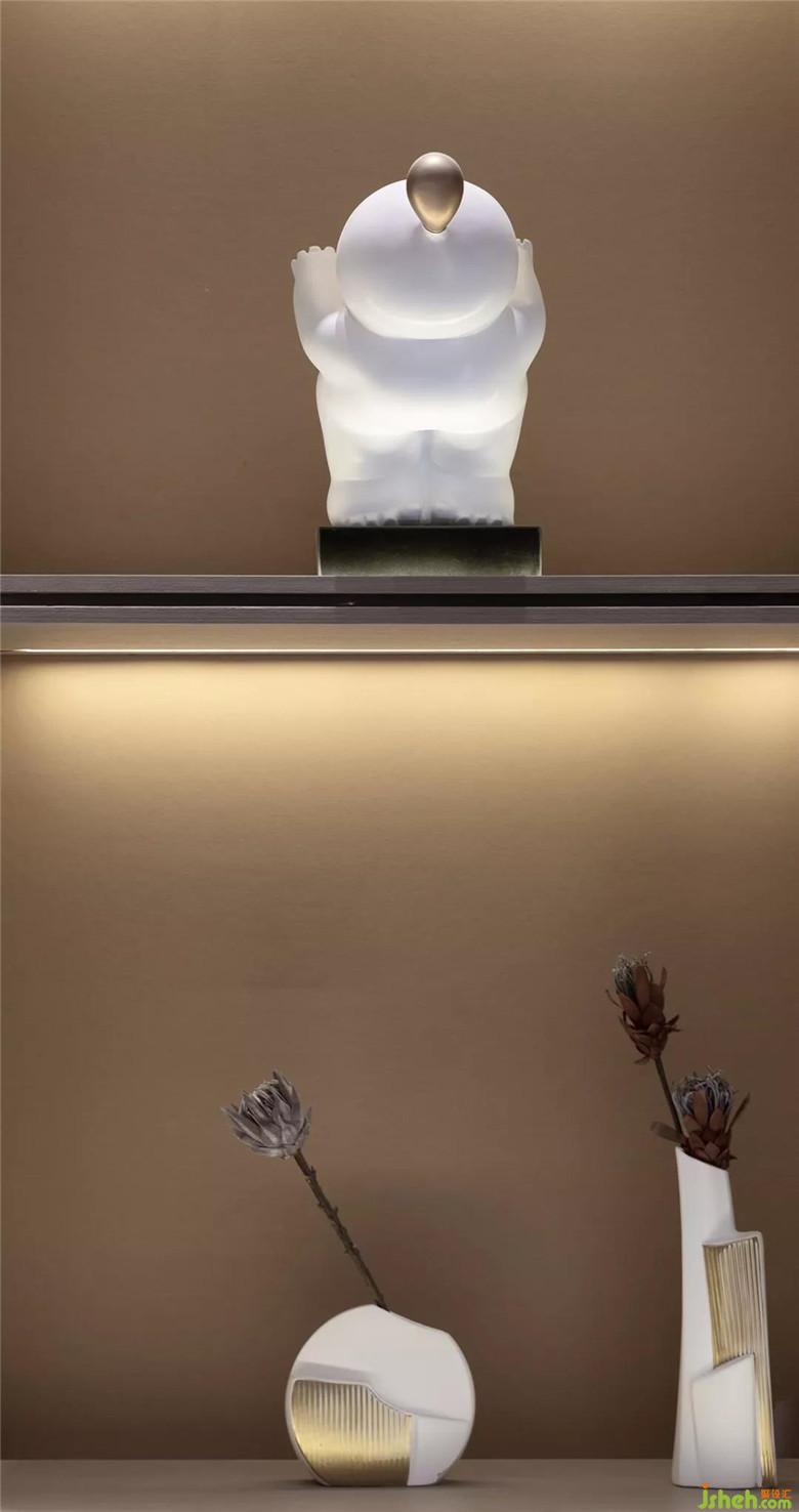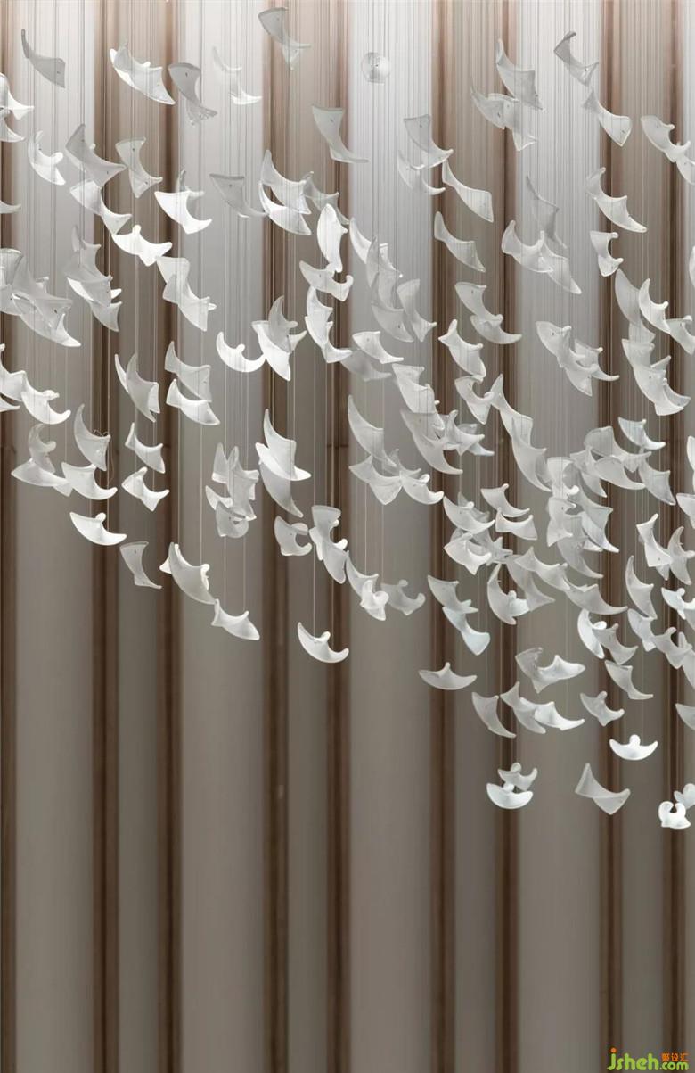 移步換景,「星河」的主題裝置續(xù)寫洽談區(qū)的氤氳飄渺,水晶燈飾以一種翩然的姿態(tài)堆疊空中,裝修公司來(lái)為訪客與場(chǎng)域提供一隅充沛的感知場(chǎng)景,點(diǎn)點(diǎn)星光將藝術(shù)的語(yǔ)言緩緩述說(shuō),恰似縹緲云霧散了又聚,別有意趣。