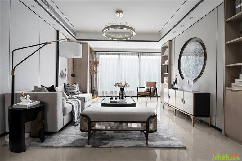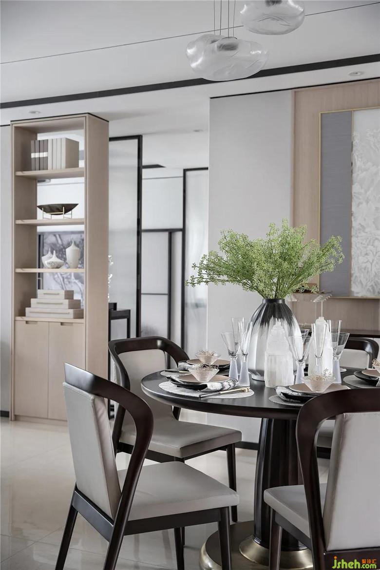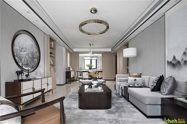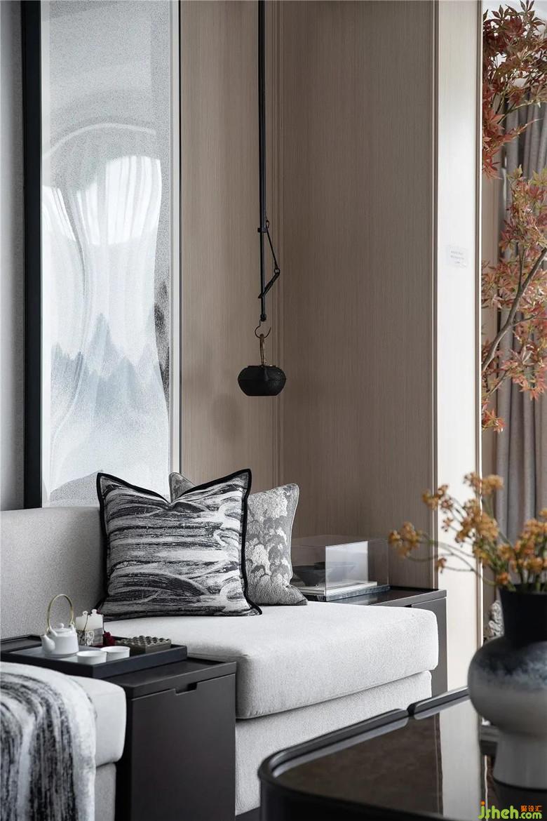 樣板房設計空間素墨色彩與紋理的相協(xié),現(xiàn)代形制中不乏綿綿古韻。清風入堂,輝光漫灑,斟上半盞清茗相鄰而坐,寧靜的不止是空間,更是心境。