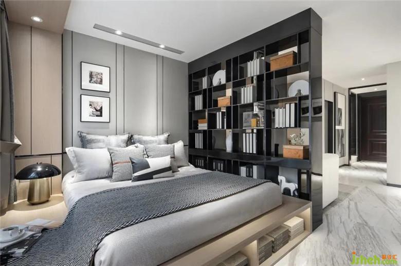 我們以不同尋常的構(gòu)思樣板房設(shè)計(jì),讓書架在空間的作用被賦予多重意義。它不僅是閱讀、自修的場(chǎng)所,亦是讓客廳、臥室形成一種融合下的獨(dú)立個(gè)體。在為各空間帶來(lái)隱私性的同時(shí),也不乏對(duì)空間尺度的把握。
