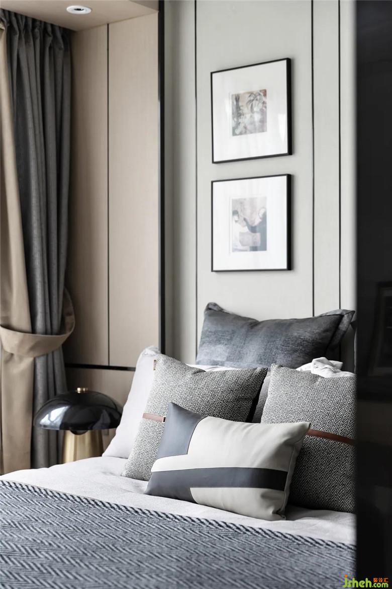 臥室,隱藏和包容著我們的一切。結(jié)合整體空間動(dòng)線,床體整體采用榻榻米的形式,讓空間更具收納性,床品工藝細(xì)致考究,柔和光澤予人家的溫柔感,燈飾摒棄對(duì)刻板美感的盲求,亦別有一番滋味。