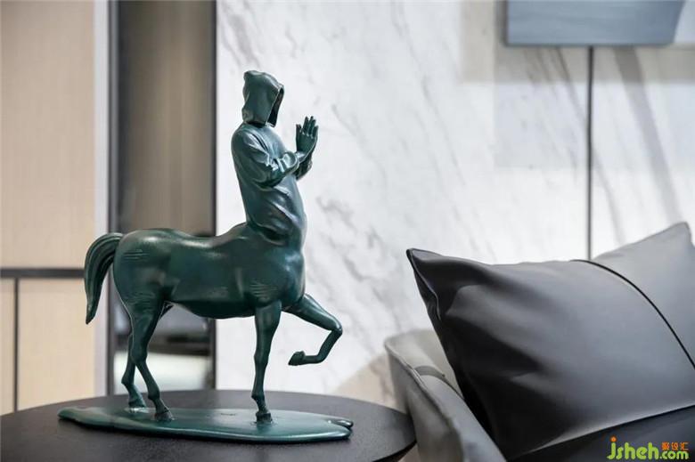 茶幾上的恐龍飾件,帶著一份意外趣味,獨特的Celeste椅子與Kvadrat羊毛織物軟墊的搭配,是設計在一成不變的節(jié)奏里,講述的細小而輕松的美好故事。